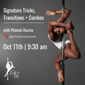 Channel the pole acrobat in you with Phoenix Kazree’s Tricks Clinic Workshop. All tricks, no dancing! Break down, drill and improve tricks that you are struggling with. Learn the elements to execute the tricks on your “wanna learn” list. This workshop is suitable for Elementary polers and up.